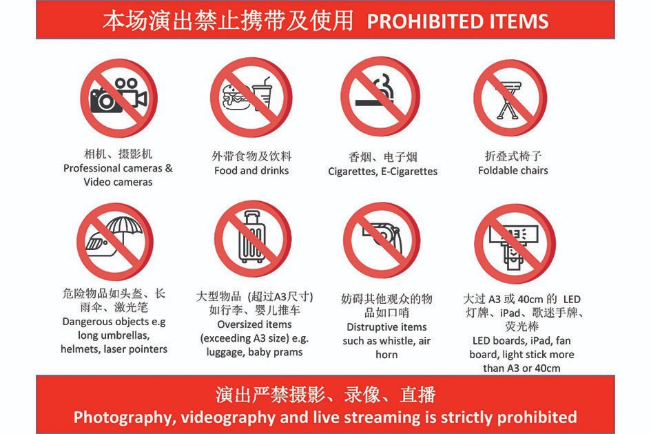 6. Travel light and bring only what you need. Please refer to the list of prohibited items. Bags larger than A3 size (approximately 29cm x 42cm) are not allowed.